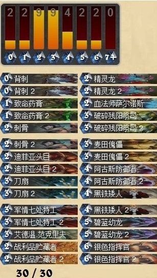 采访:这次比赛大部分都是很盗贼内战。大部分也都是冠军贼的套组,略有变化。我想针对仆从贼内战是加入一定的AOE 效果还是不错的。贱人乱舞和刀扇在毒药和血法师等加法伤怪的配合下能打出不错的效果,另外带上背叛的效果也是明显的。这次比赛我一共使用过2张橙卡,绿皮队长和霍格。绿皮队长的特效在配合毒药的使用,在清理仆从和对英雄的输出效果都是不错的。霍格是我在决赛局备牌阶段临时更换上去的,是为了增加对场面的控制。可惜最后没有抽到这张卡。所以橙卡虽然在单卡质量上比较有价值,如果能配合上其他卡牌,效果会更加明显。
